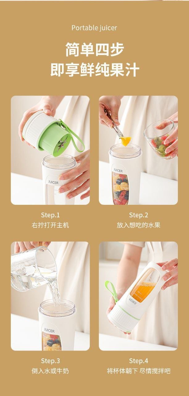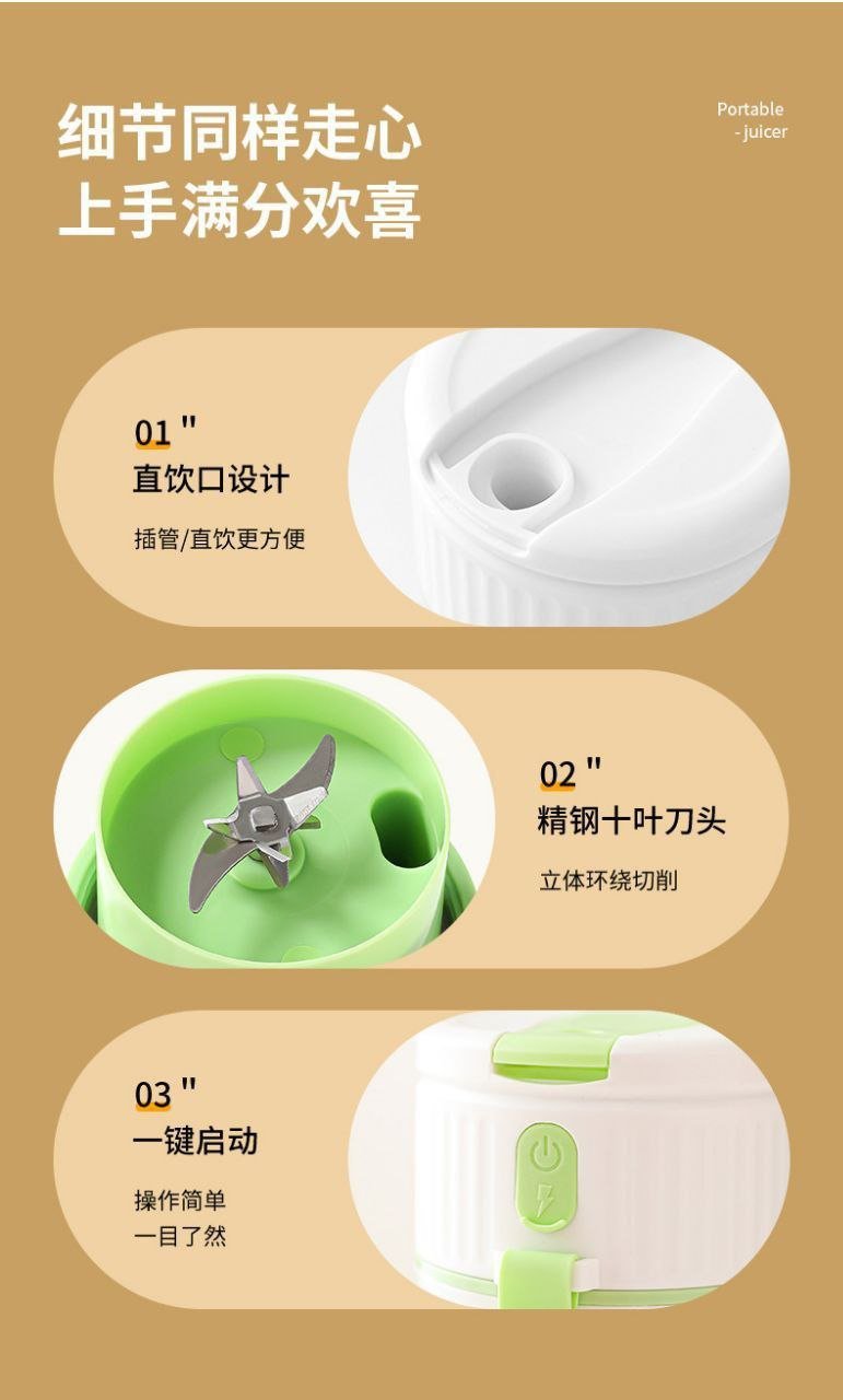 خلاط محمول صغير ومحمول ومتعدد الاستخدامات ويمكن استخدامه كخلاط عصير بالإضافة إلى كوب ماء. يمكن مزج جميع الفواكه والخضروات معًا. صحية وصديقة للبيئة حيث يتم استخدام مواد غير سامة وآمنة غذائيًا، والتي يمكن استخدامها بأمان. تصميم جميل جدًا للاشخاص الذين يحبون العصير وأيضًا نمط حياة صحي! امزج الفواكه والخضروات المختلفة بحرية وفقًا لذوقك. سرعة تقليب سريعة
